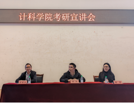 2025年11月5日,计算机科学学院在学生活动中心举办了2023级考研专题宣讲会。本次宣讲会邀请到计算机科学学院副院长刘唐教授、经济与管理学院副院长蒋丹教授,以及经济与管理学院研招办主任徐成波副教授担任主讲。宣讲会由2023级辅导员潘星星老师主持。