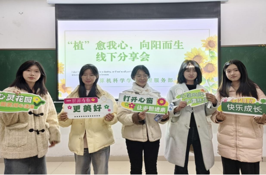 12月3日,由计科学院学生两委心理服务部主办的心理品牌活动——“‘植’愈我心,向阳而生”植物培育线下分享会在第一教学楼A105举行。计科学院心理辅导站指导老师徐寄尘,互联网学院2025级辅导员王梦珂及两个学院的新生班主任李佳雨、闵文东、赵梦霞到场指导。