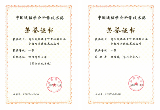 近日,中国通信学会公布了2025年中国通信学会科学技术奖评审结果,学院教师周维曦作为第6完成人完成的科研成果获2025年度中国通信学会科学技术奖一等奖。这是我校在信息通信领域的首个该级别奖项。“中国通信学会科学技术奖”是在工业和信息化部的支持下,经国家科技部批准,由中国通信学会设立的全国信息通信行业权威奖项。该奖项旨在奖励在通信科学研究、技术创新与开发、实现高新技术产业化和科技成果推广应用等方面取得成果或者做出突出贡献的个人和组织。