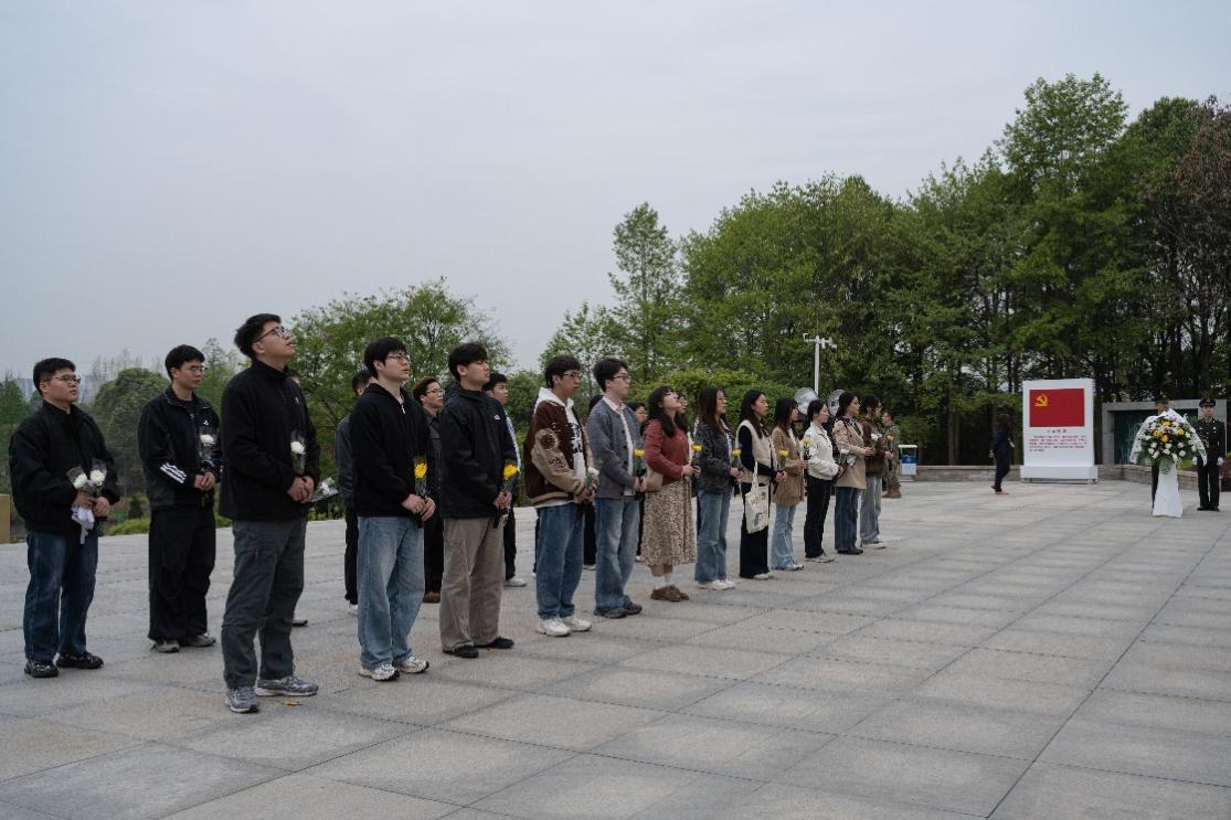 上午9时,参与学子在成都市烈士陵园门口准时集合、签到整队,在工作人员引导下有序入园。祭扫仪式上,全体学子手持小白花,向革命先烈肃立默哀,依次敬献白花,表达对英烈的深切缅怀与崇高敬意。随后,大家先后参观烈士纪念馆与烈士墓区,在一幅幅历史图片、一件件珍贵文物、一个个英烈事迹前驻足凝视,认真聆听革命故事,深刻感悟先烈们为民族解放、国家富强抛头颅、洒热血的崇高精神与坚定信仰。